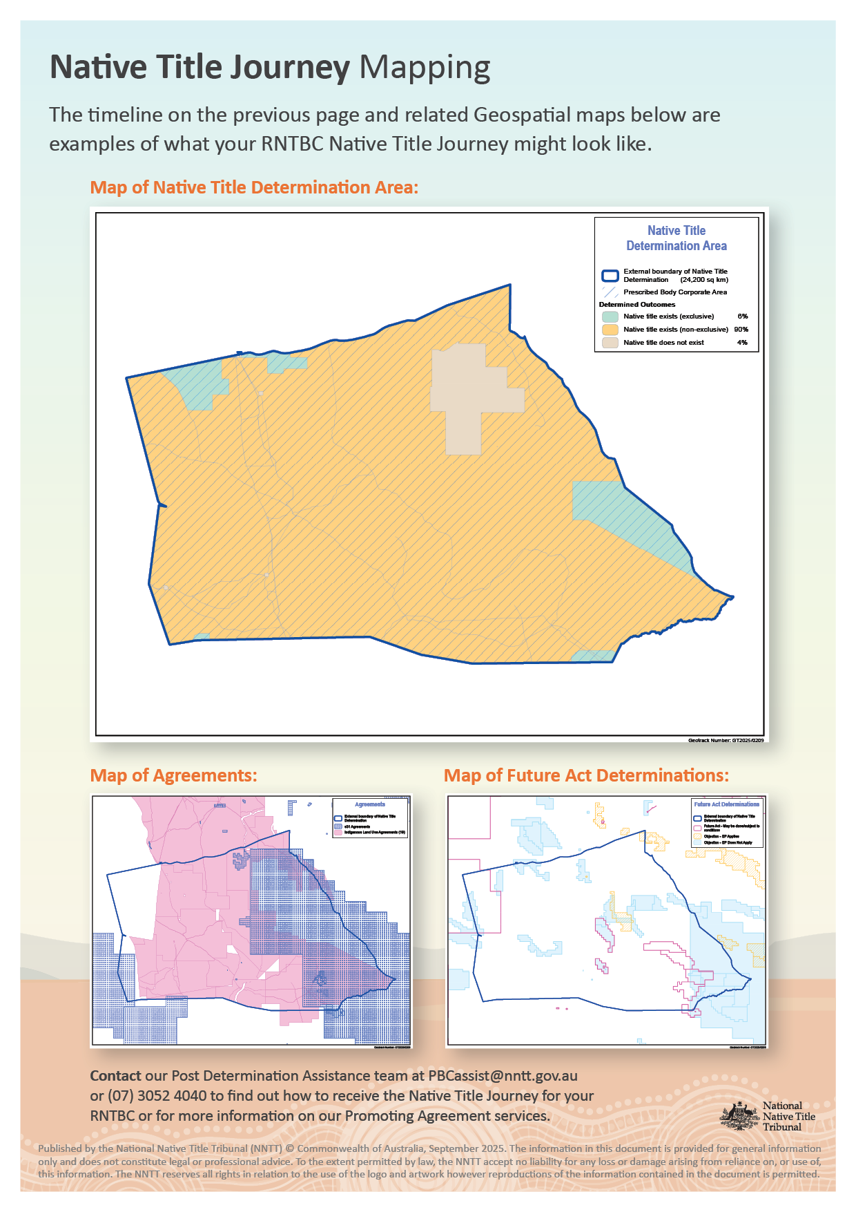 The above images are an example of what your Native Title Journey timeline could look like and the types of mapping images you can request. Click on the images to download a PDF (or download from above right panel) for more detail and information on our Native Title Journey products.